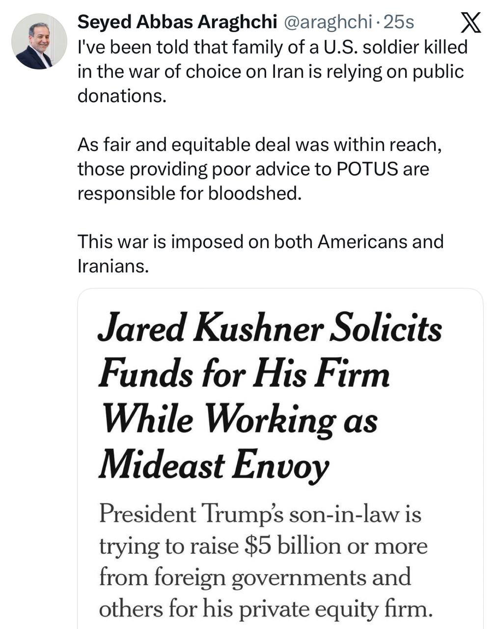 وزیر امور خارجه: این جنگی است که هم بر آمریکاییها و هم بر ایرانیان تحمیل شده است