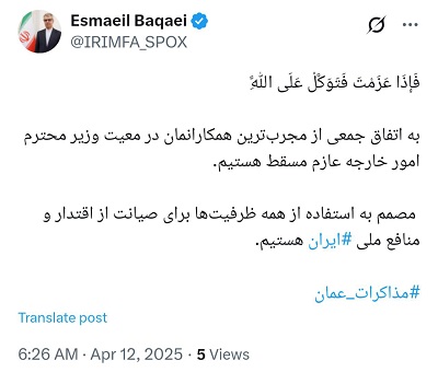 پیام سخنگوی وزارت امور خارجه در شبکه ایکس